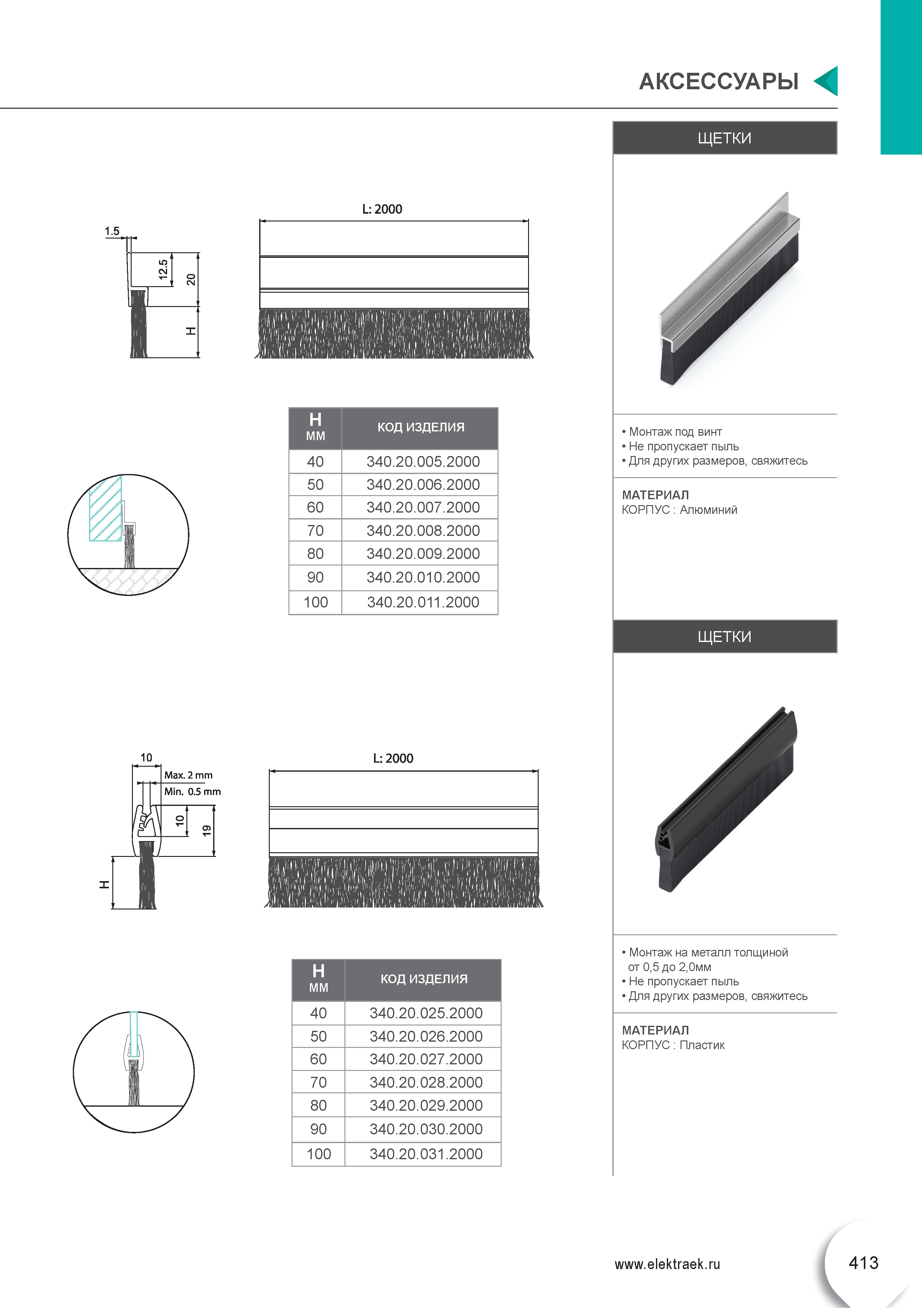 Дверная пылезащитная щетка 340.20.025