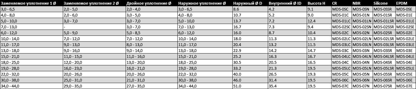 CR (хлоропрен), NBR, Силикон, EPDM