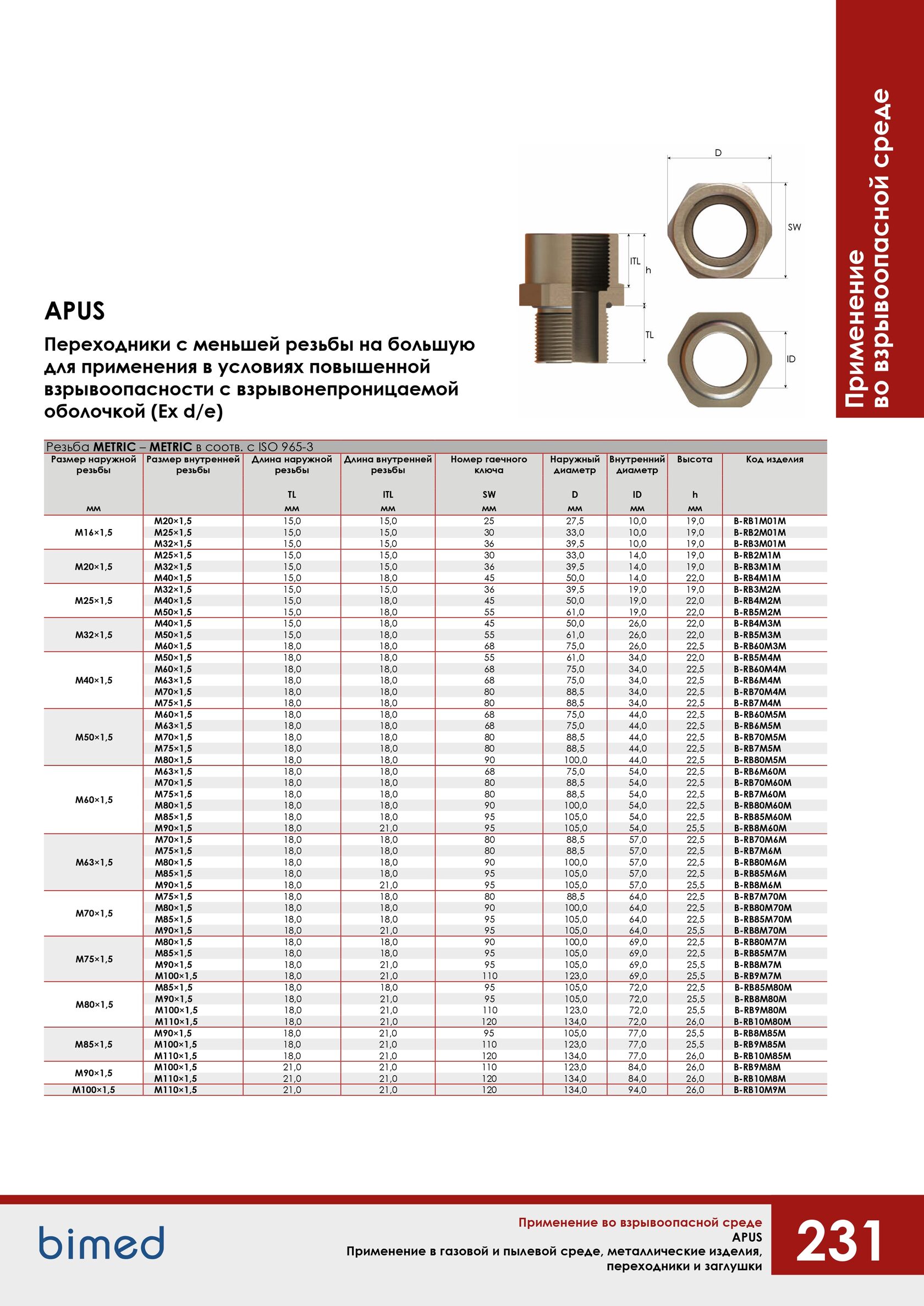 Переходники с меньшей резьбы на большую для применения в условиях повышенной взрывоопасности с взрывонепроницаемой оболочкой (Ex d/e) Apus