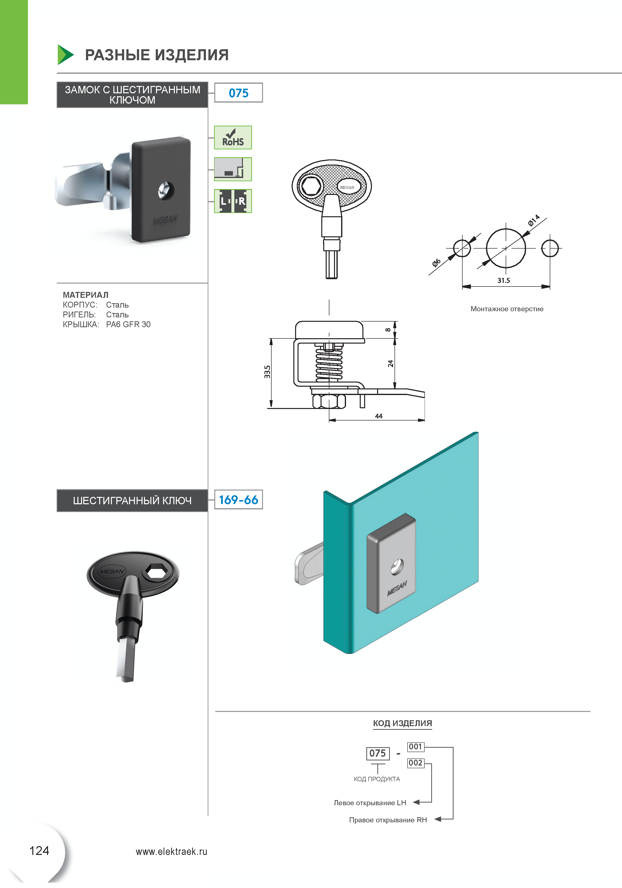 Замок с шестигранным ключом 075