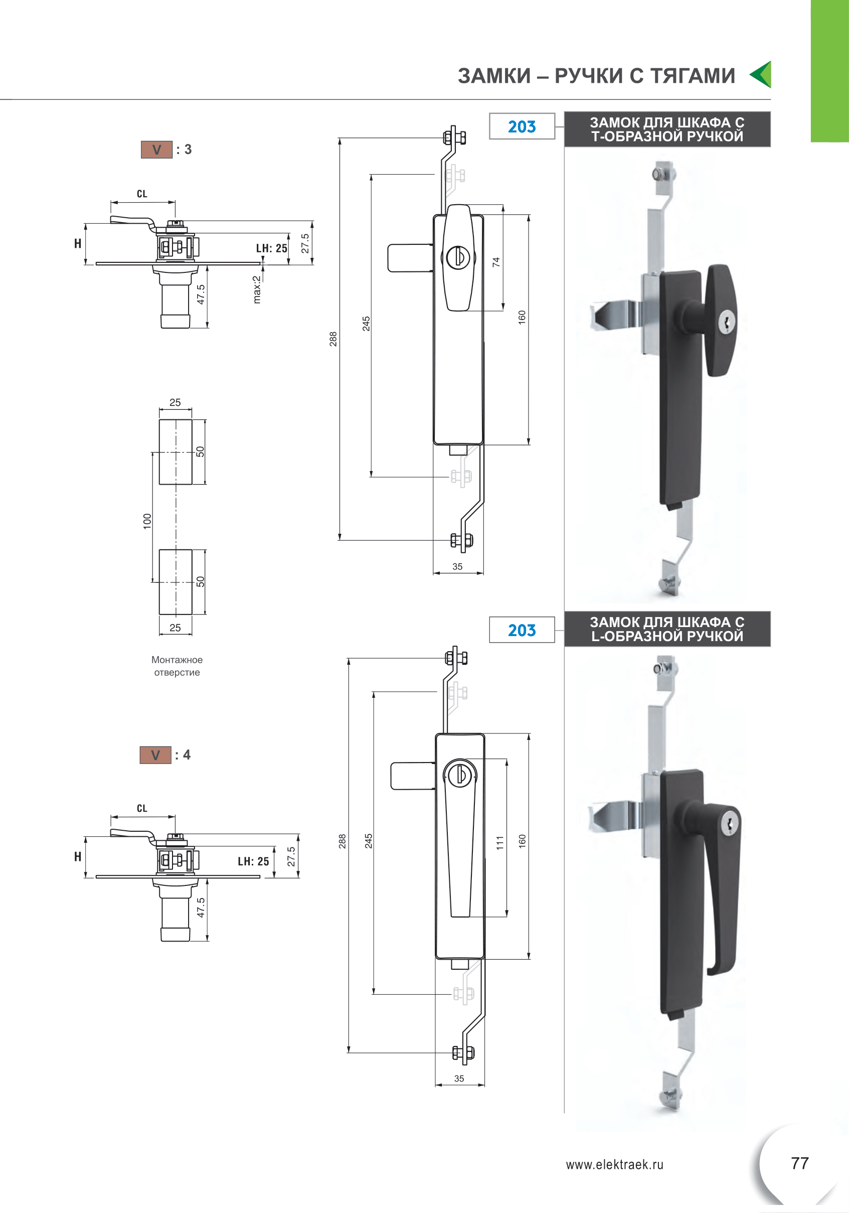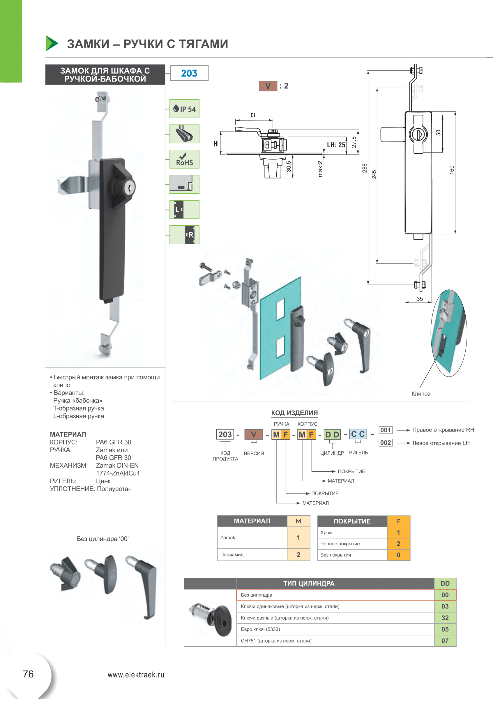 Замок-ручка с механизмом для тяг 203-2 203-3 203-4