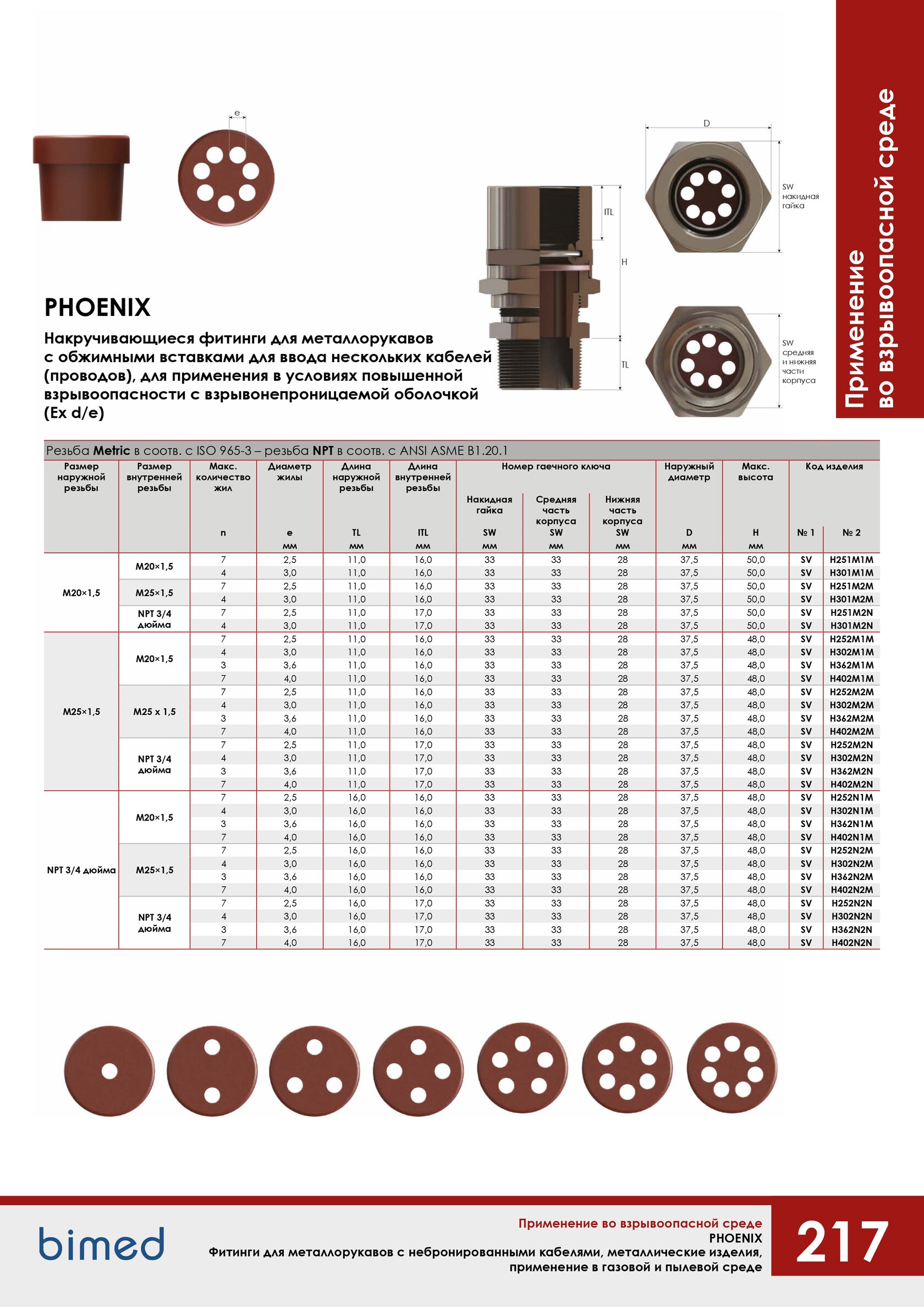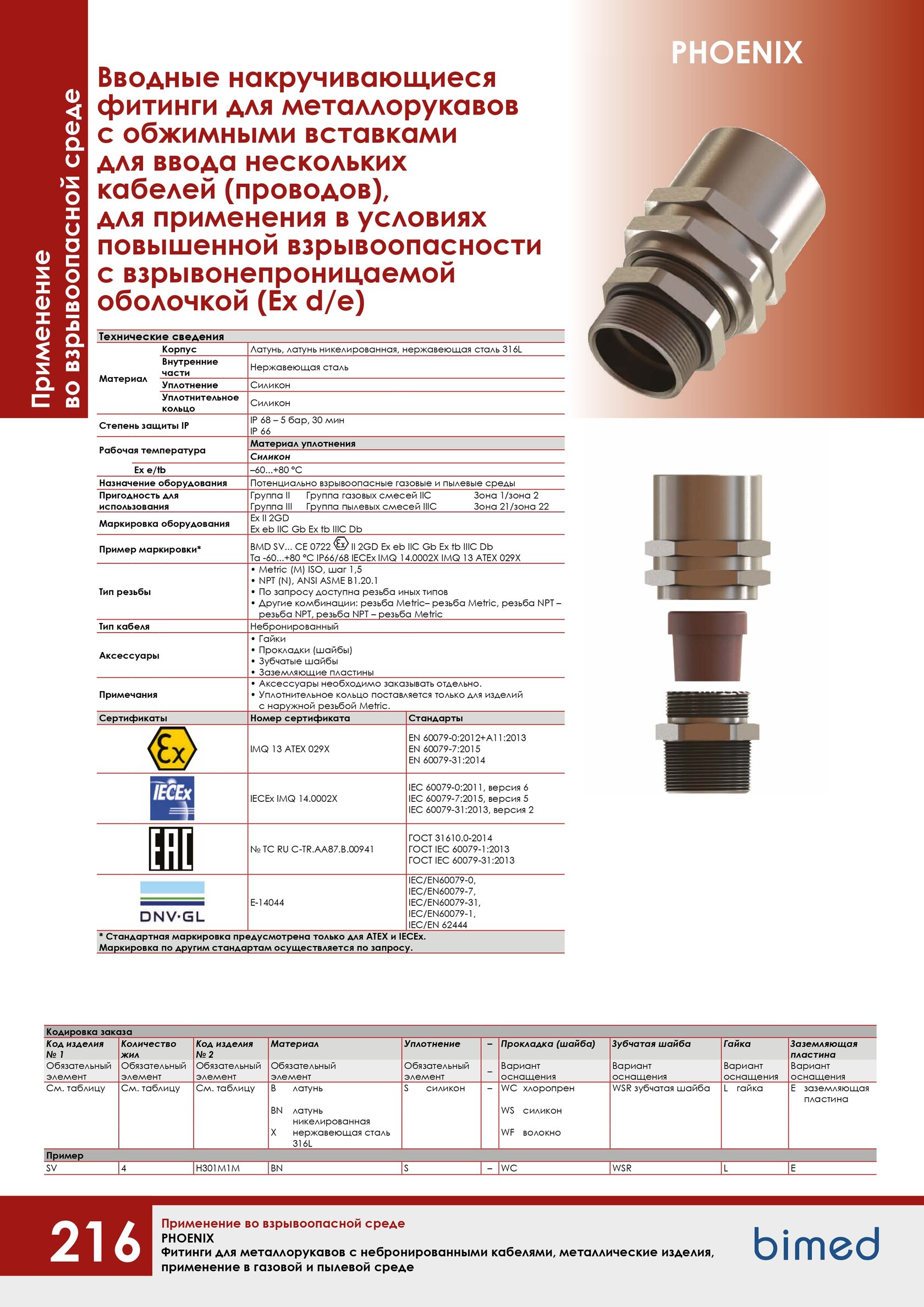 Накручивающиеся фитинги для металлорукавов с обжимными вставками для ввода нескольких кабелей (проводов), для применения в условиях повышенной взрывоопасности с взрывонепроницаемой оболочкой (Ex d/e) Phoenix