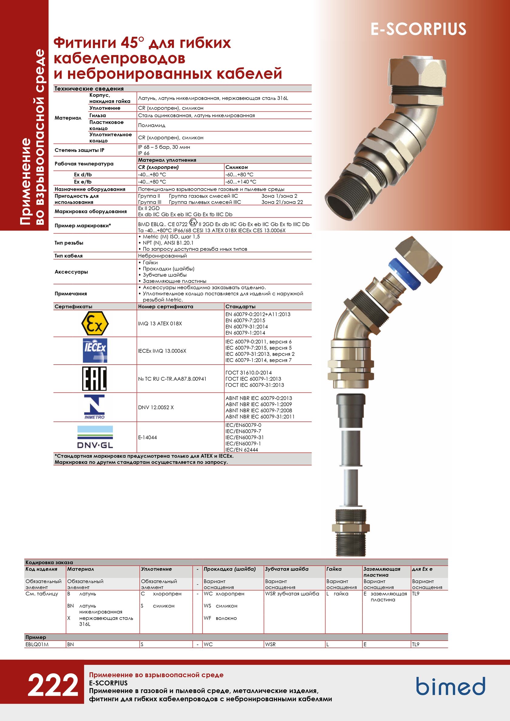 Фитинги 45° для гибких кабелепроводов и небронированных кабелей Scorpius