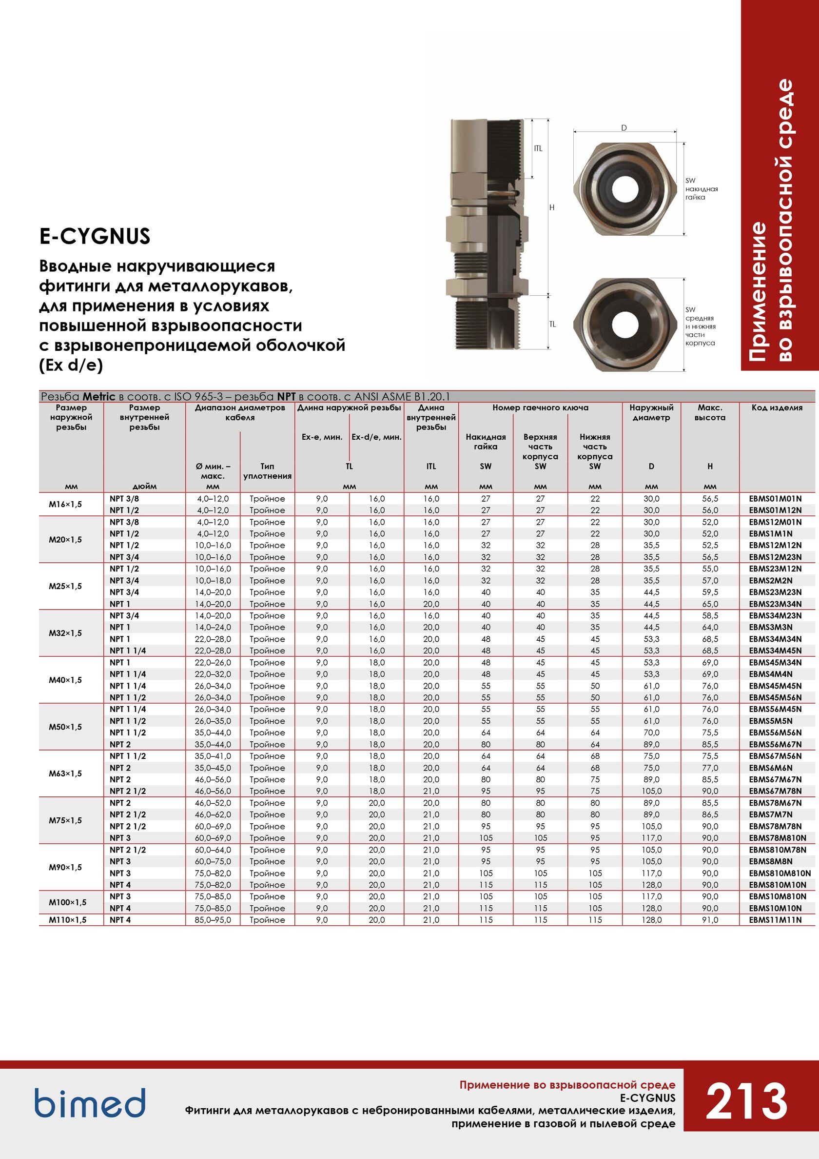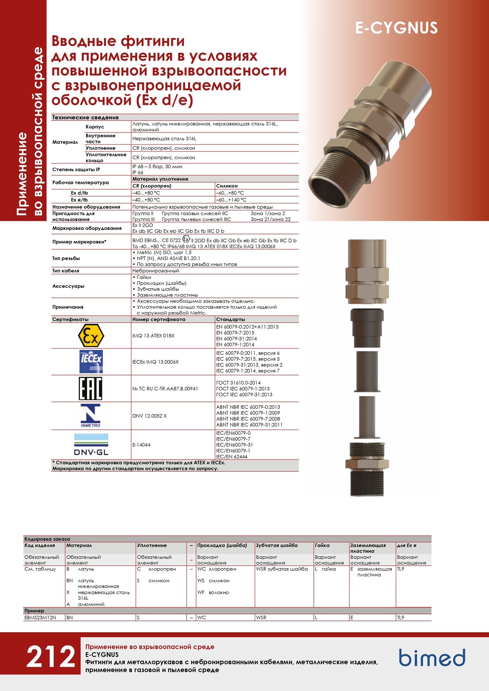 Вводные накручивающиеся фитинги для металлорукавов, для применения в условиях повышенной взрывоопасности с взрывонепроницаемой оболочкой (Ex d/e) E-Cygnus