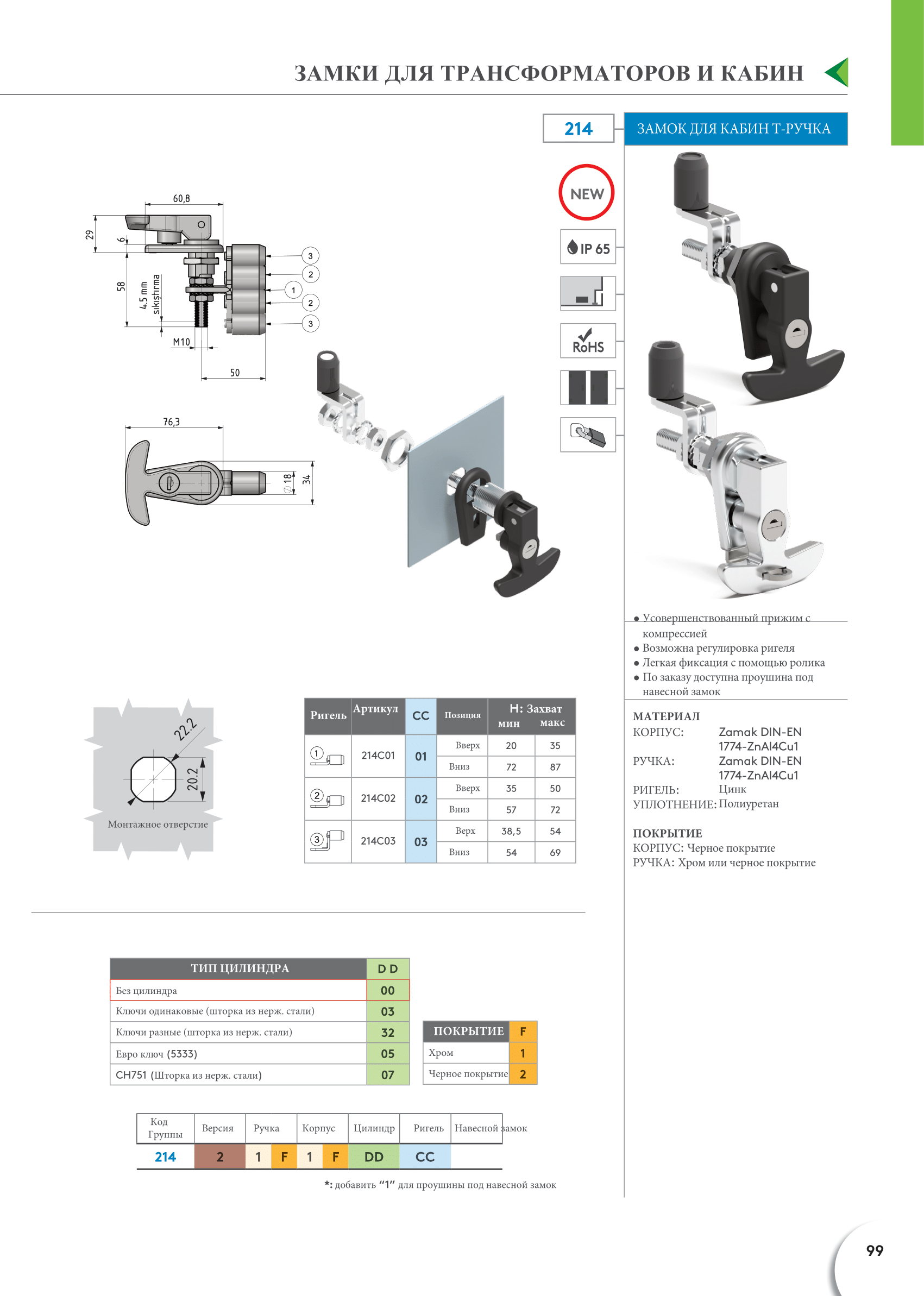 Замок для кабин Т-ручка 214