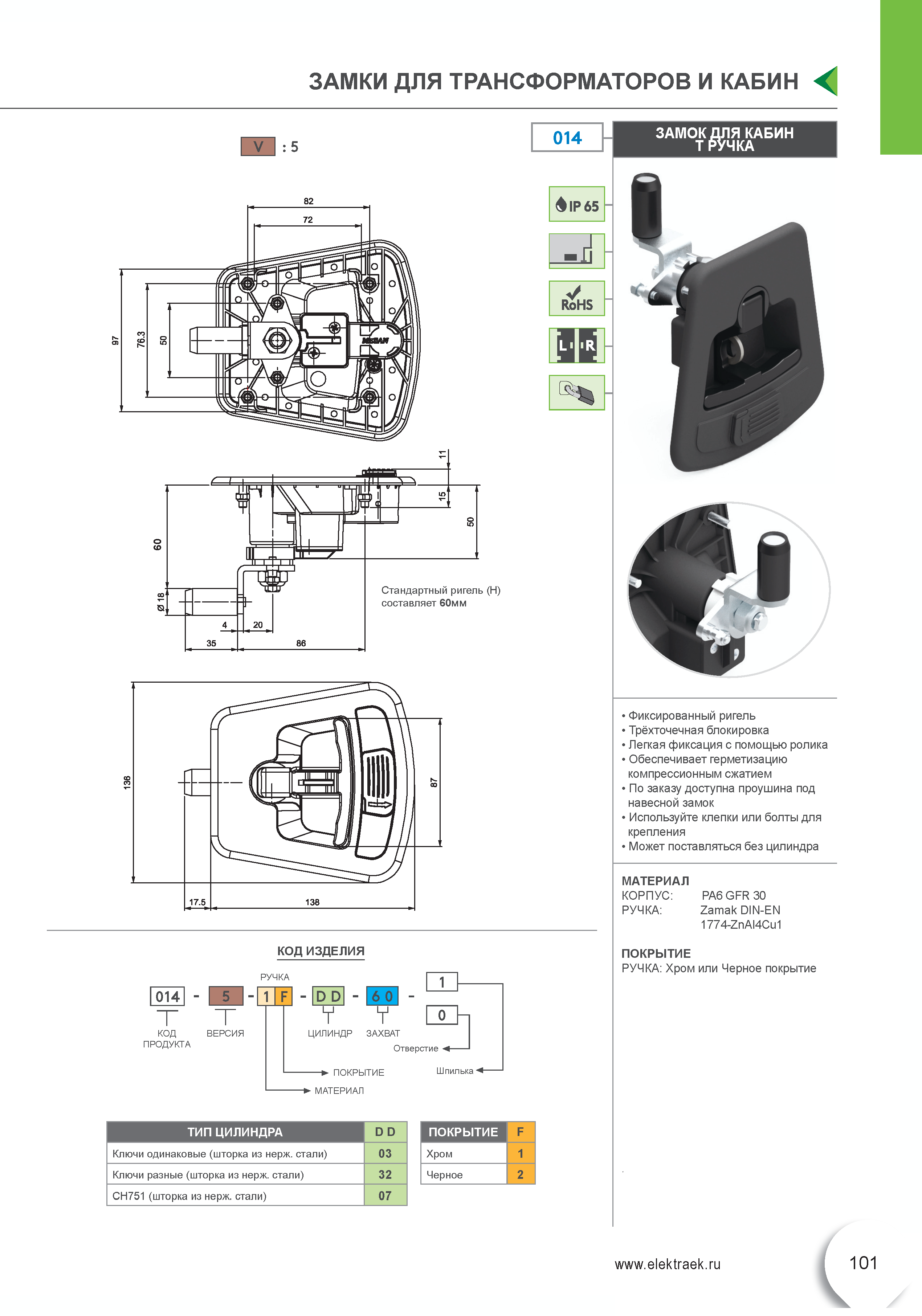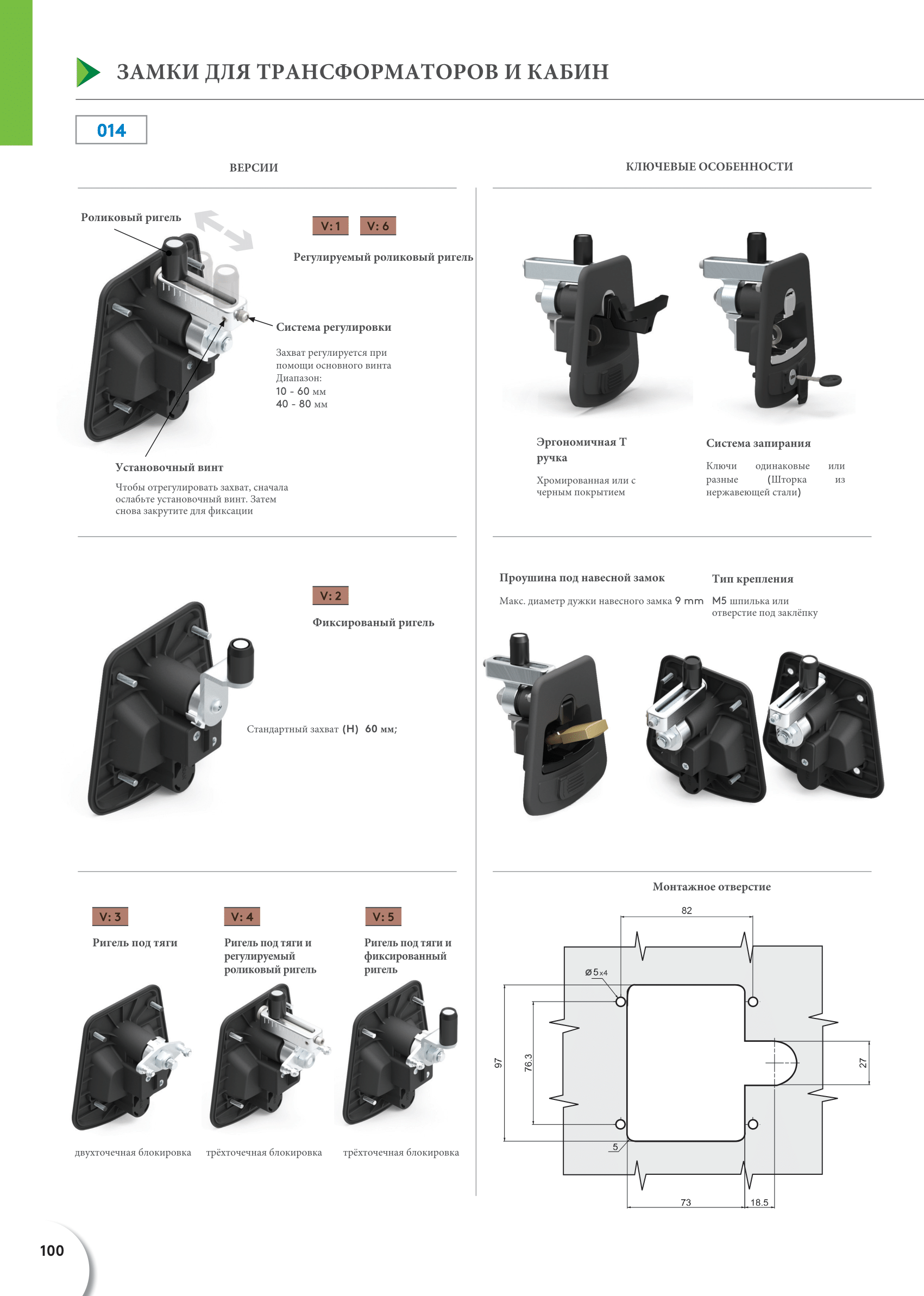 Ригель регулируется поворотом главного винта от 10 до 60мм