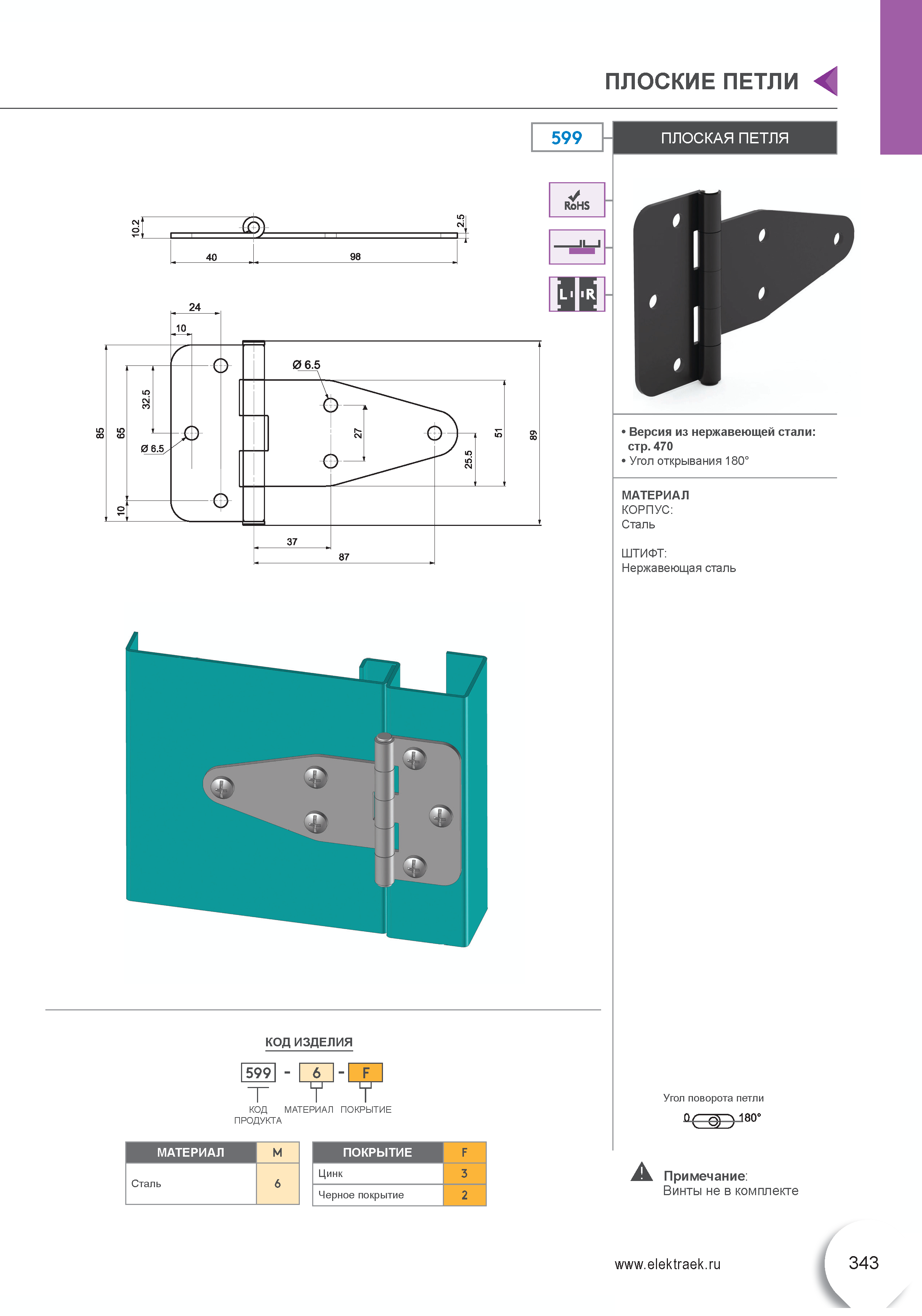 Угол открывания 180°