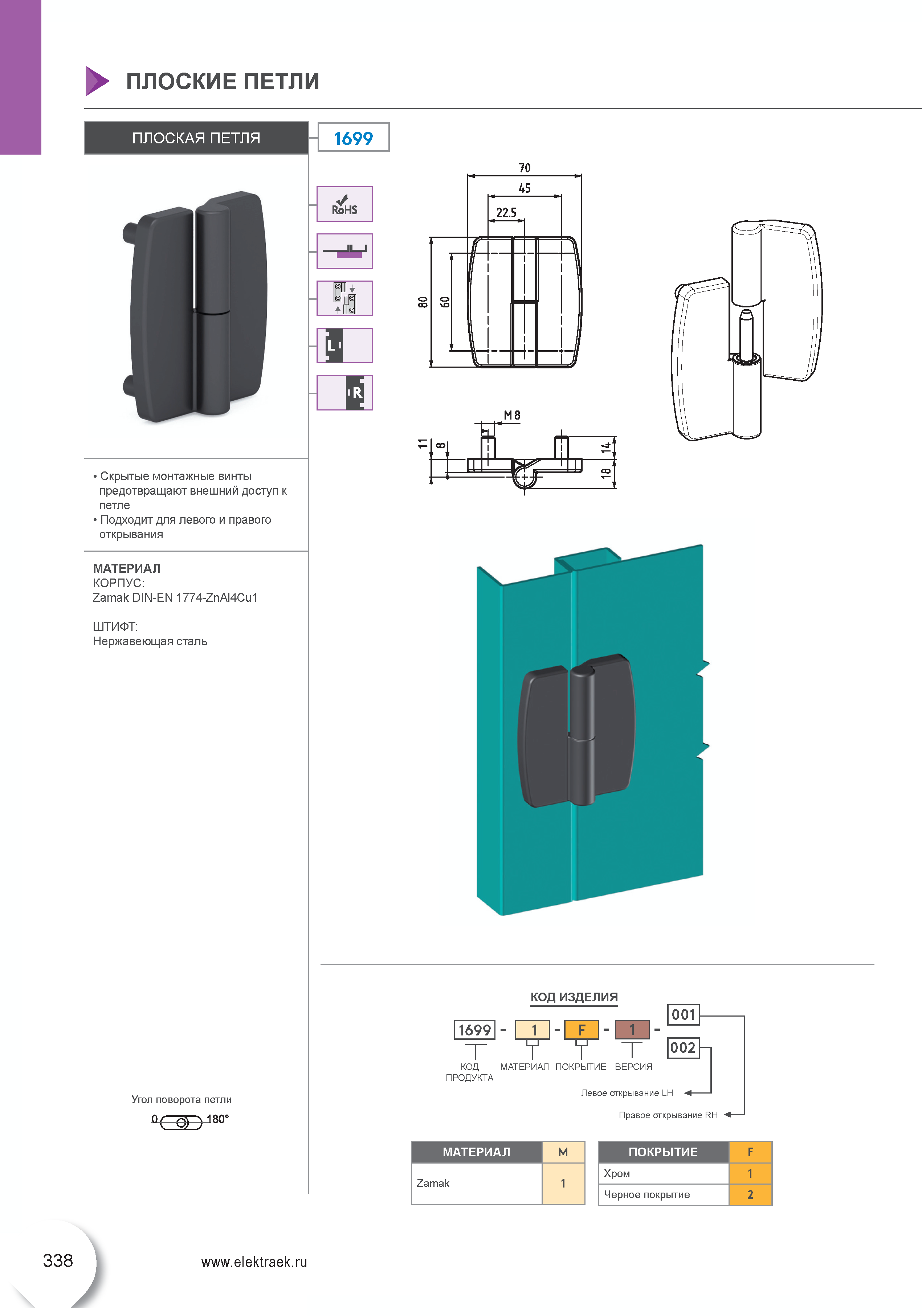 Скрытые монтажные винты предотвращают внешний доступ к петле