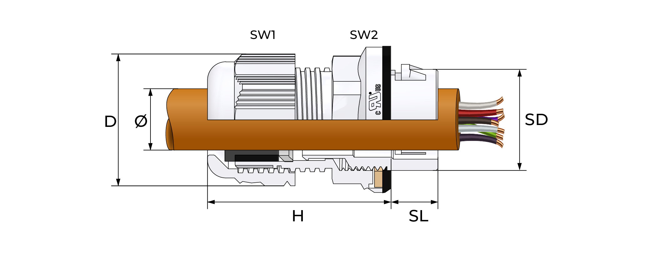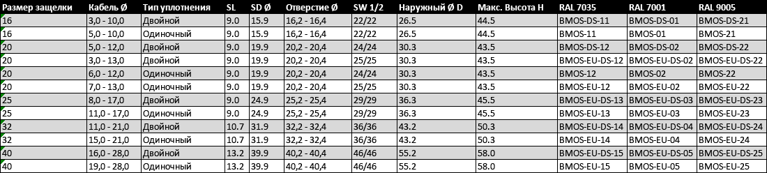 Материал кабельного ввода : PA 6 V2 согласно UL 94 Материал прокладки : Хлоропрен (Chloroprene) Материал уплотнения : Хлоропрен (Chloroprene) Степень защиты IP : IP68 (5 бар, 30 мин), IP66 NEMA Рейтинг типа 4X Воспламеняемость : V2 по стандарту UL94