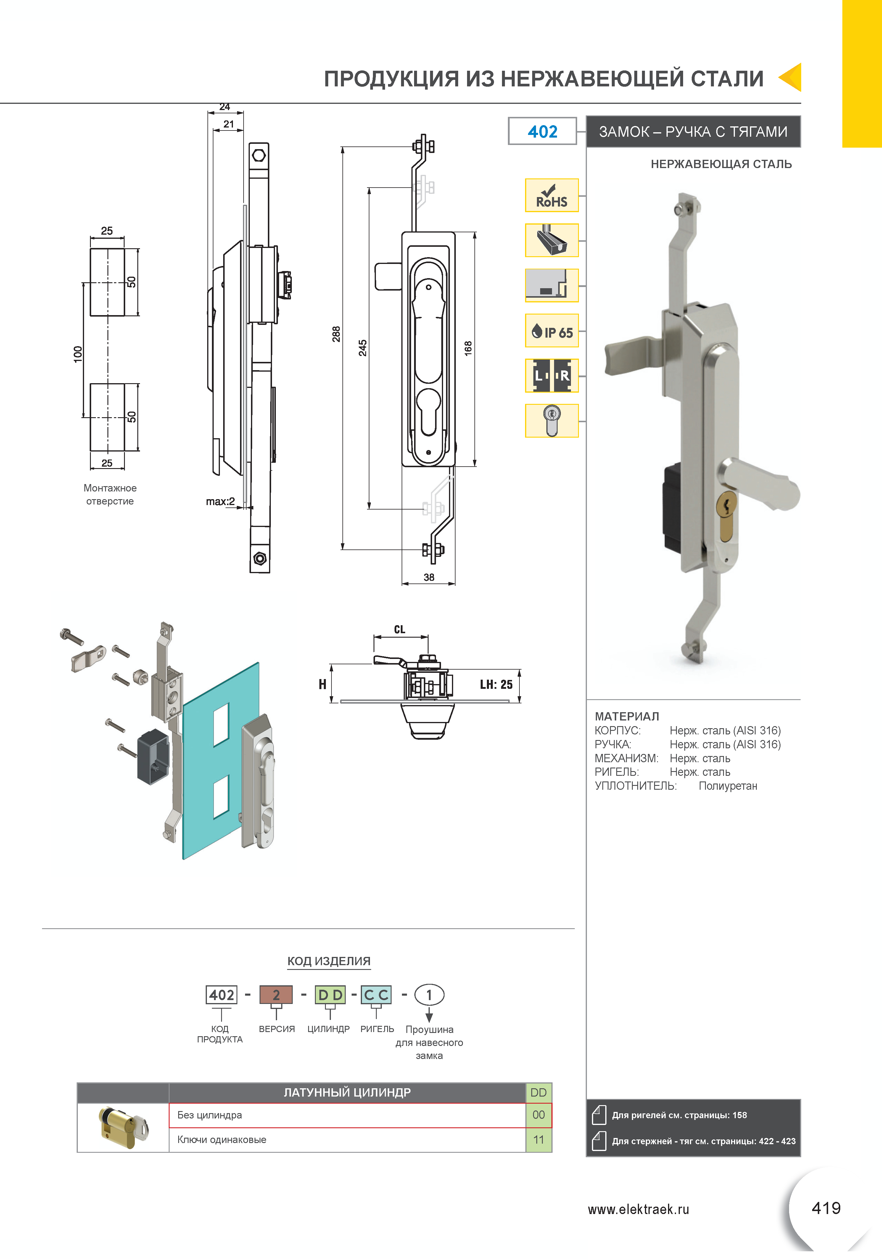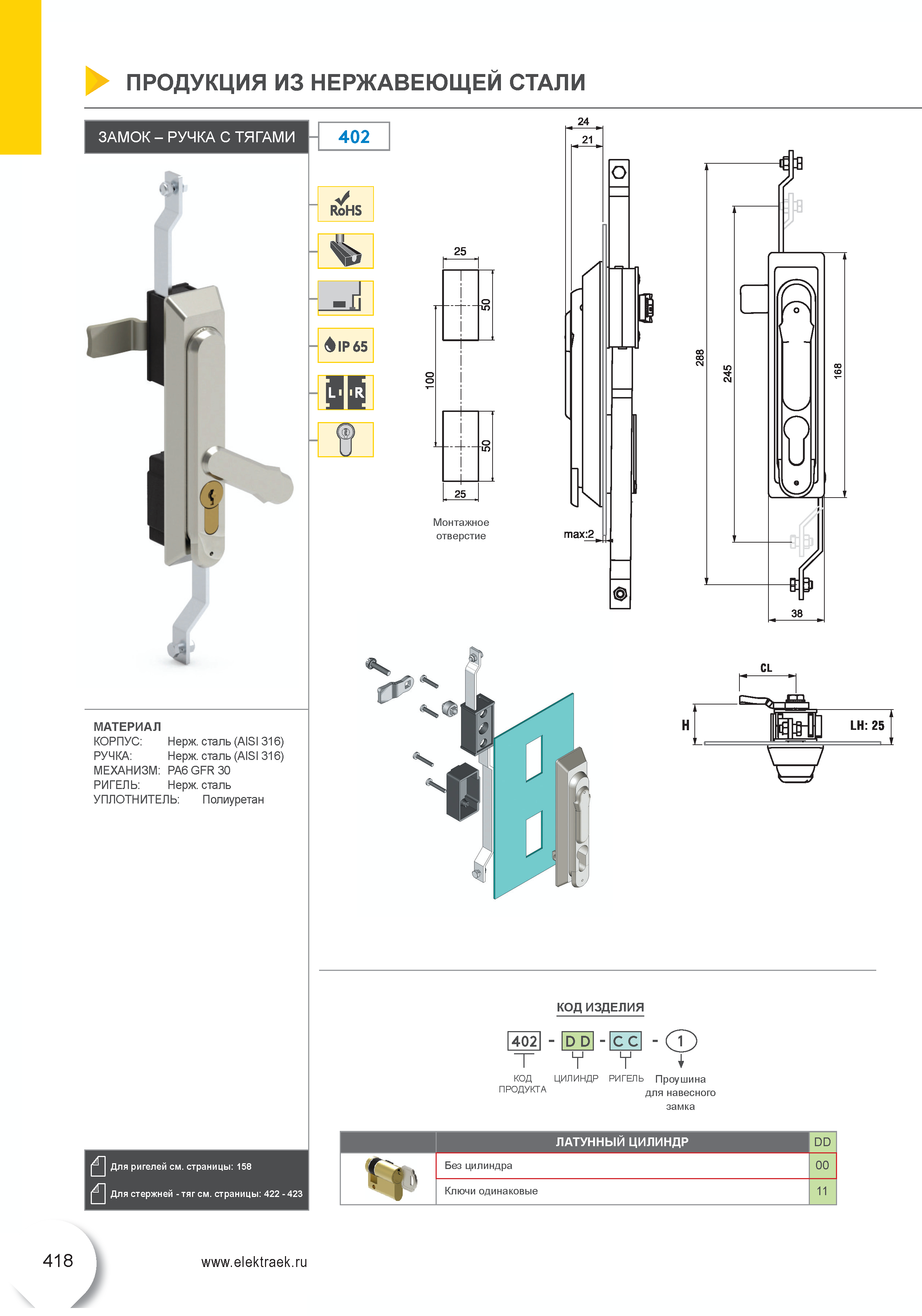 Замок-ручка с механизмом для тяг 402