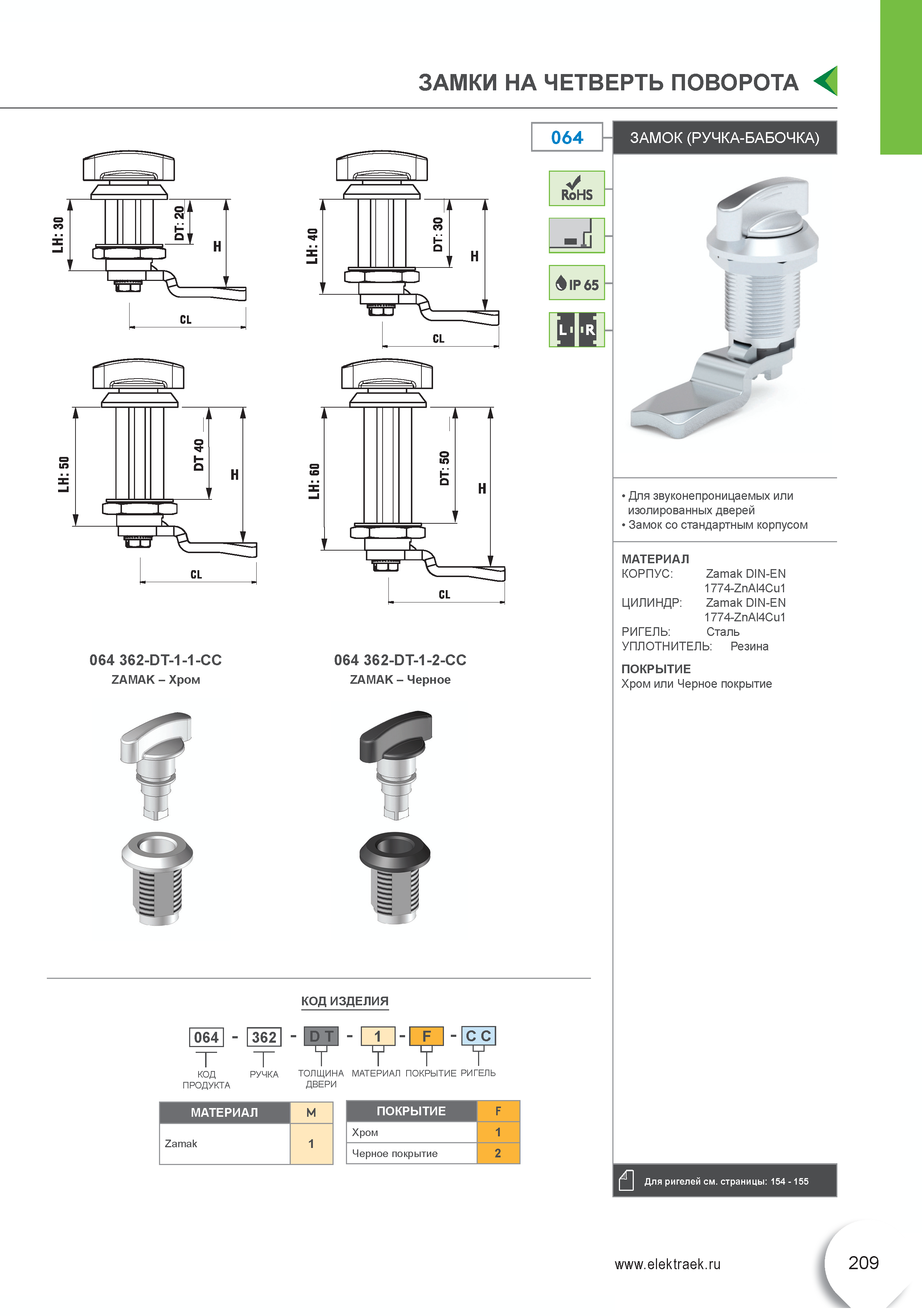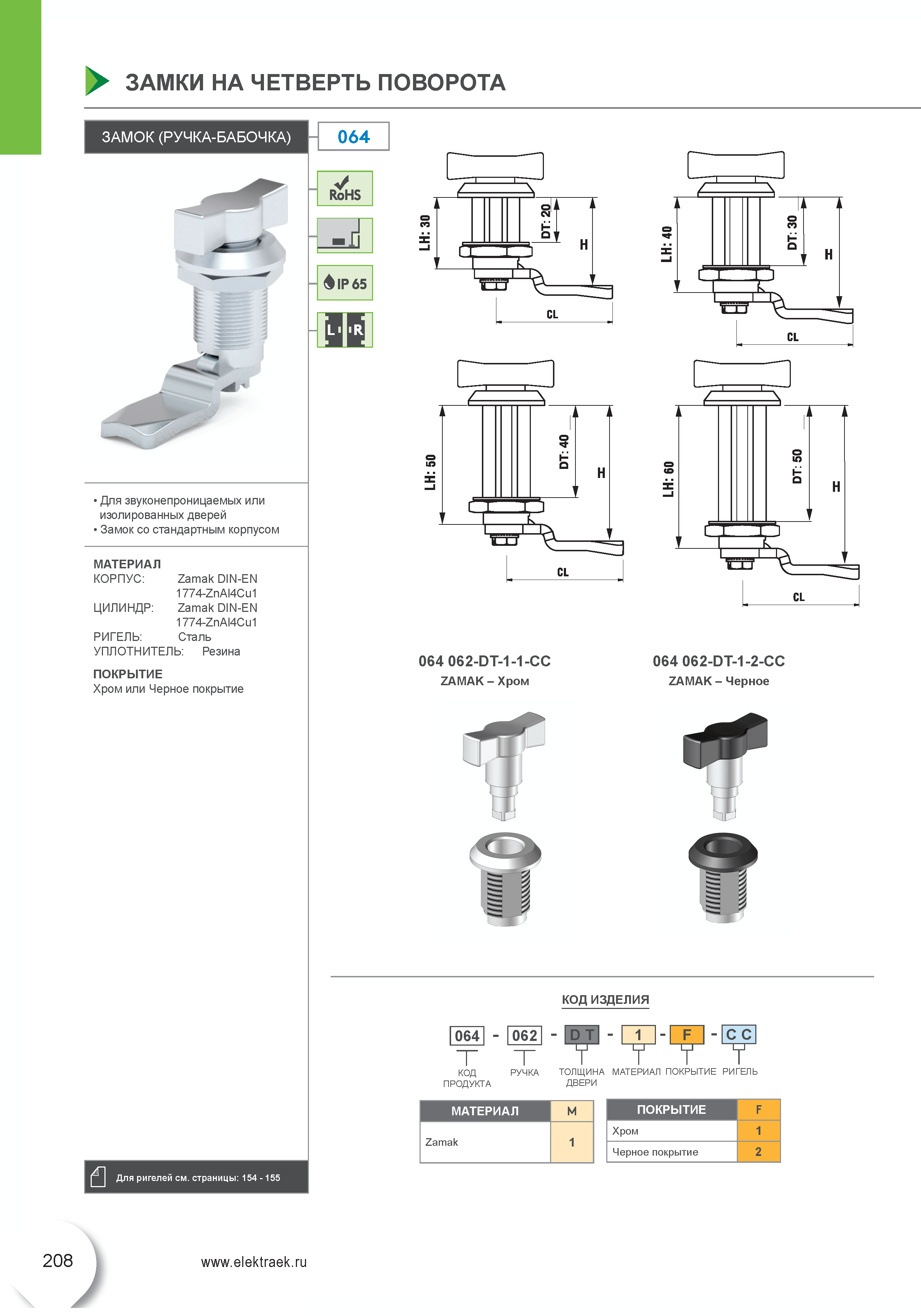 Замок на четверть поворота (ручка-бабочка) 064