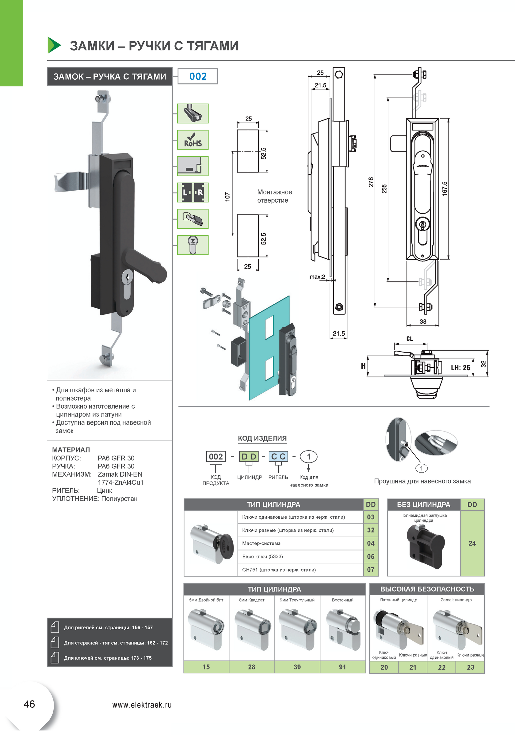 Замок-ручка с механизмом для тяг 002